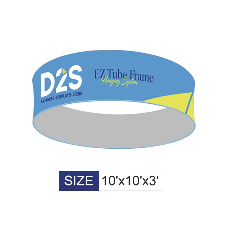 Circular Tube Hanging Banner is a must have if you want to get noticed. These extra large hanging banners are produced from high quality fabric and enables your booth to be seen from practically anywhere at your trade show. Available in round, square, and triangle configurations as well as numerous sizes, there is a Skybox Hanging Banner that would suit almost any situation.