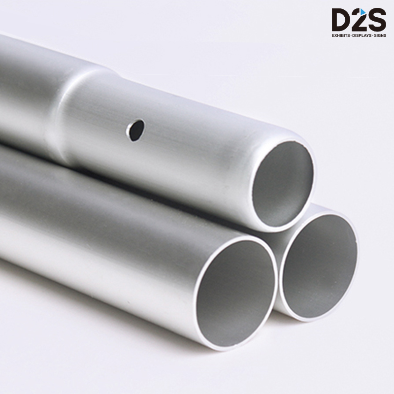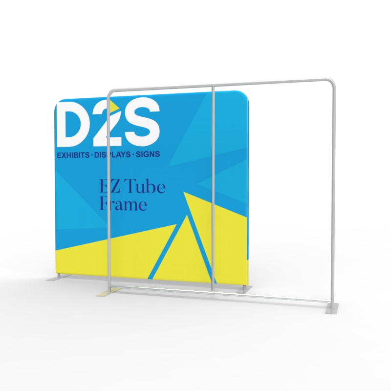 Tension Fabric Tube Backdrop manufactured with a lightweight anodized aluminum tube frame, supplied with a one-piece tension fabric graphic, often referred to as a fabric 'sock' or 'pillowcase'. Custom printed graphics zip up around the banner tube frame, creating a seamless display area with no visible seams or panel joins like traditional magnetic Pop Up Stands.