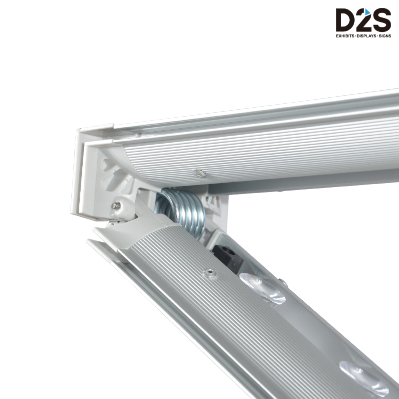 Folding freestanding Light Box enhances brand visibility and interior signage by providing a vibrant and high quality display solution for interior environments such as retail stores, workplace interiors, events, trade shows. Featuring a durable 85mm aluminum frame, this light box minimizes shadowing by ensuring consistent and even light dispersion. The push-fit fabric graphics are easy to swap, allowing for branding or promotional changes. Folding pop up light box can be effortlessly Magnetic splicing in infinite configurations to meet your specific needs (straight walls connections). SEG folding pop up light boxes are available with custom printed dye-sublimated graphics. Padded travel bags are included to keep your frames and graphics protected during transport and storage.